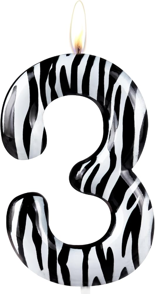 Number 3 Candles 3rd Birthday Candles Zebra Black Happy Birthday Candle Premium Wax & Metallic Design Zebra Themed Cake Topper Decorations for Birthday Party Anniversary Celebration Supplies