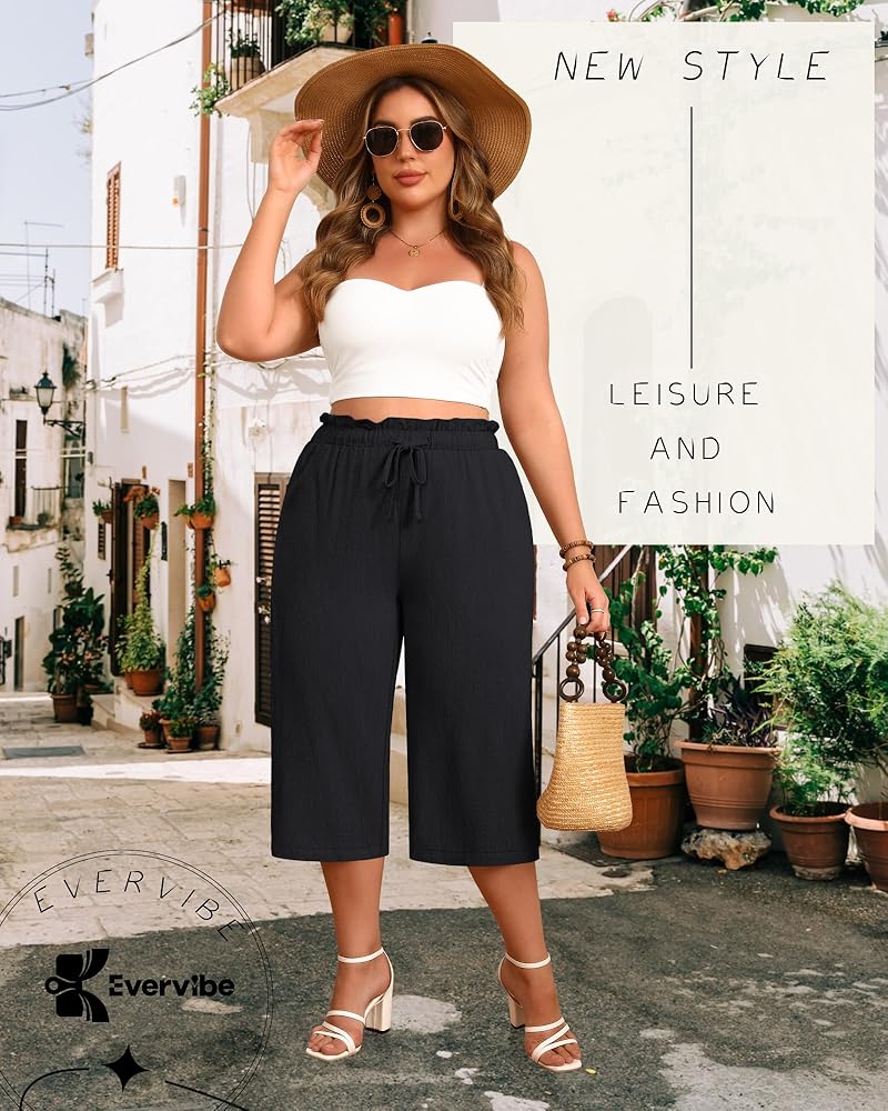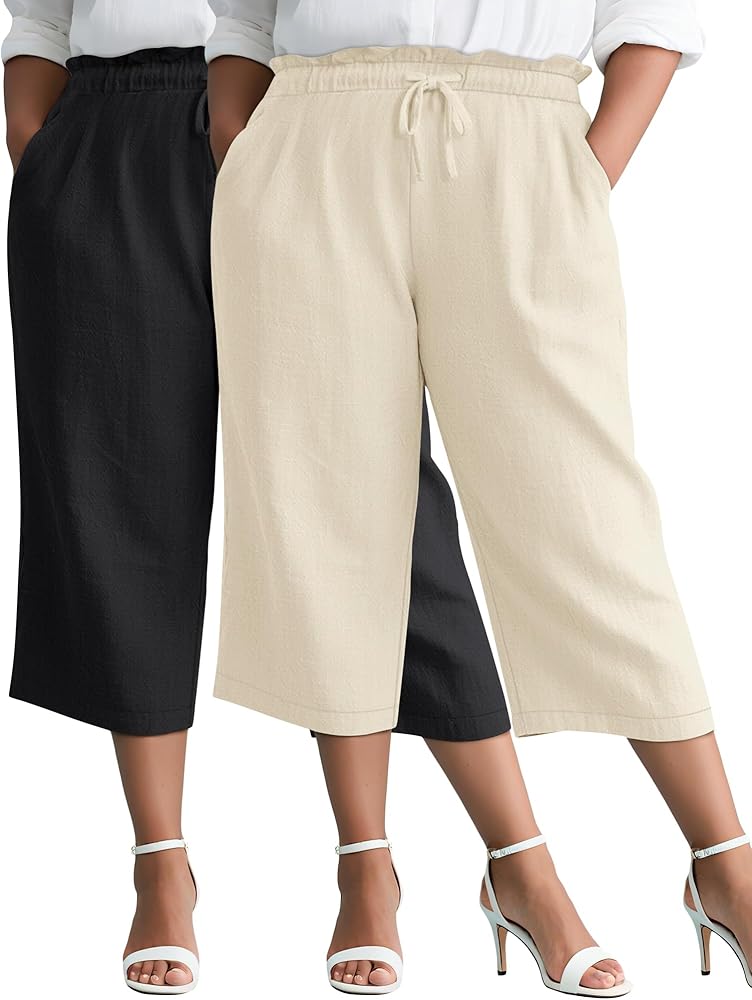 Plus Size Design: our loose linen pants for women in sizes from L to 5XL, offer options for different body shapes; The cropped pants with ruffles, drawstring, and high waist, can show the ankle and modify the waistline while giving a flattering appearance