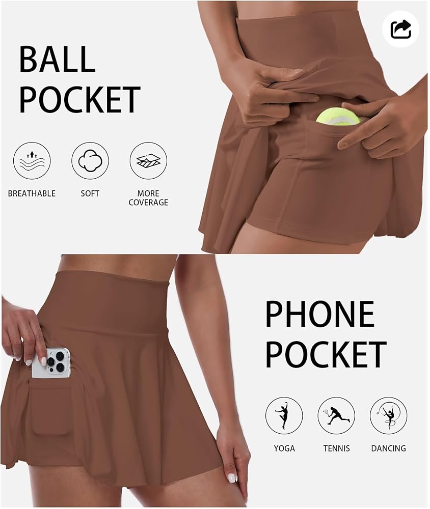 The women's pleated tennis skirt/golf short with 3 pockets storing balls, keys, cards, cash, phones,whether you're exercising or shopping, let your hands free