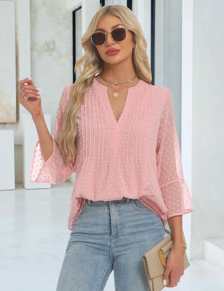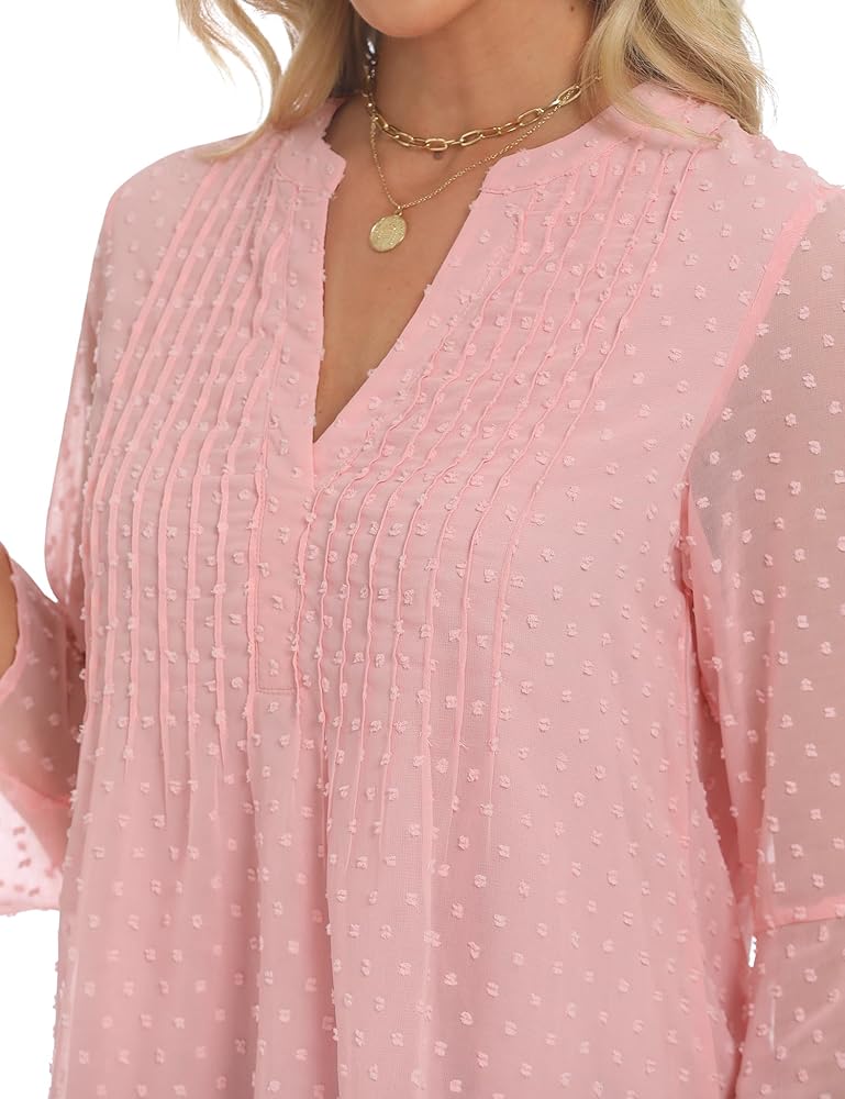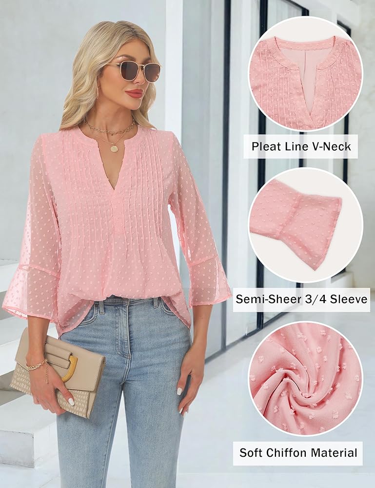 [Fabric]: Business casual Tops for Women is made with lightweight and soft mesh chiffon material, comfortable and cool to wear, breathable and non-transparent, no wrinkles, drape naturally, not easy to shrink and deform