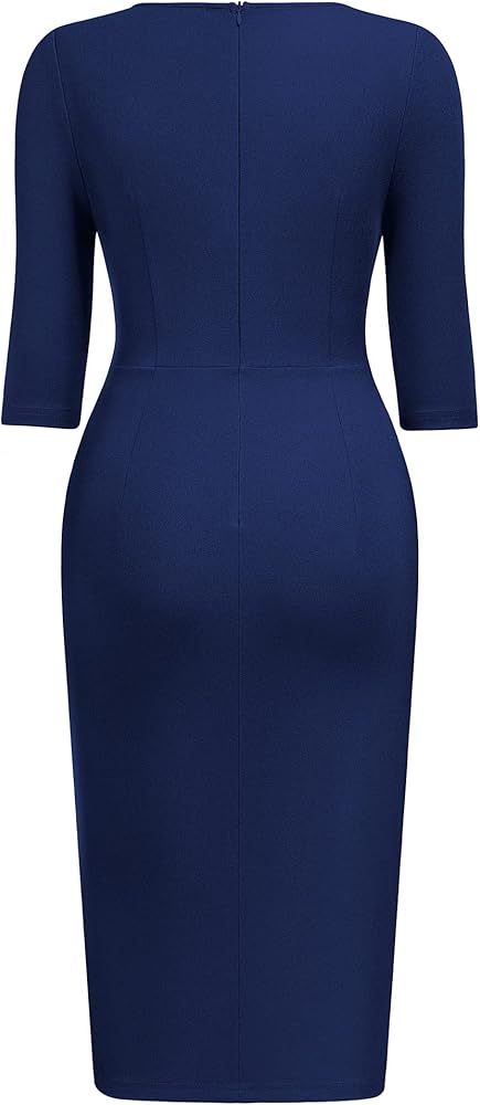 AISIZE Women's Classic V Neck 3/4 Sleeve Work Business Dress