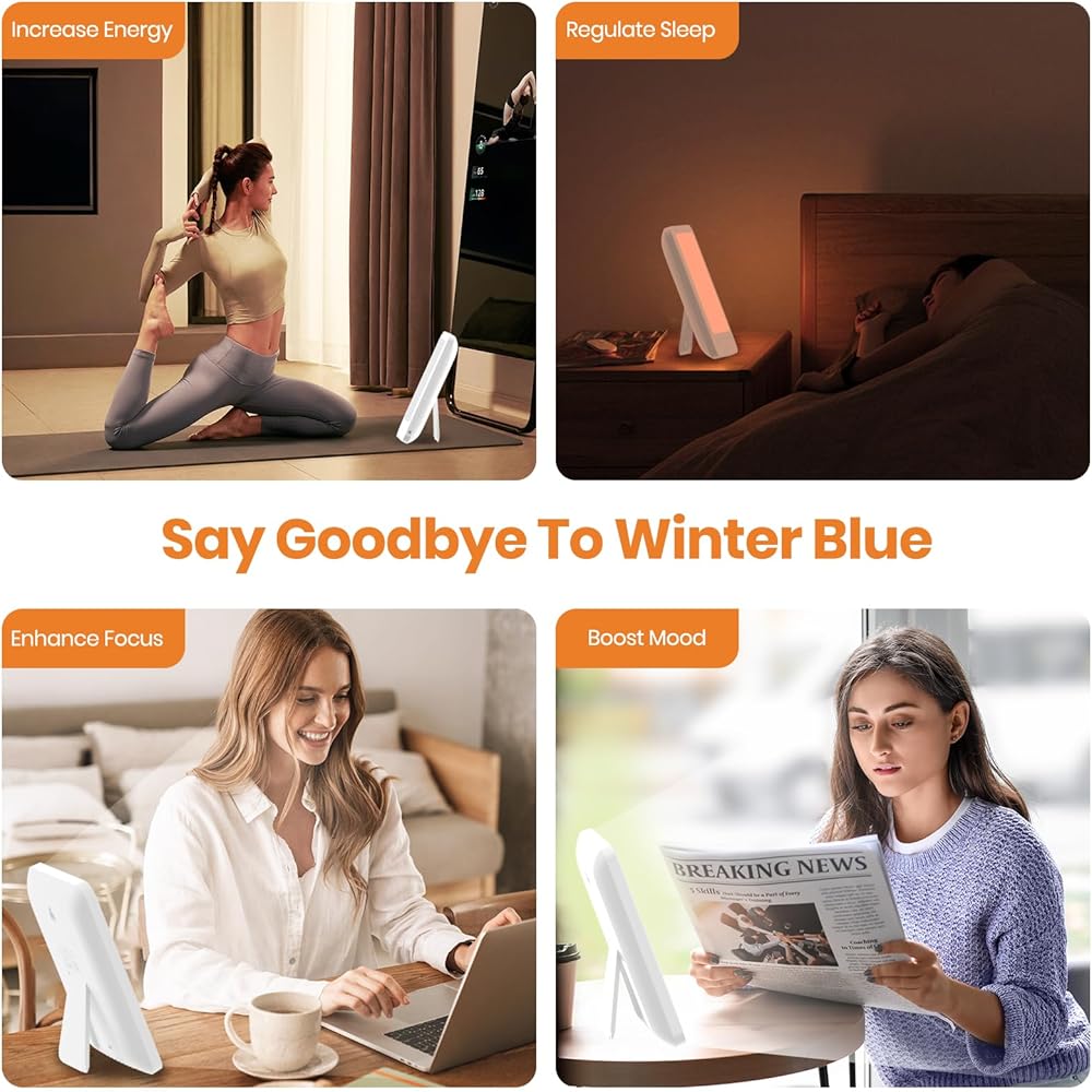 Portable & Multiple Use: The light therapy lamp can be used by standing or wall-mounted on the wall. Compact and lightweight, making it easy to carry and use anywhere