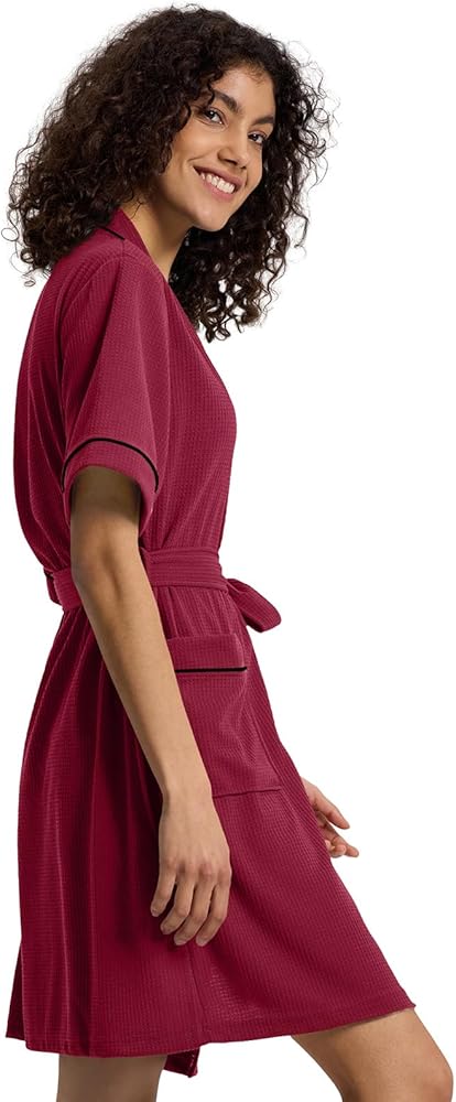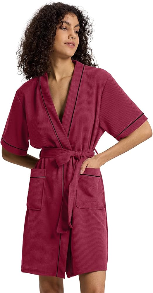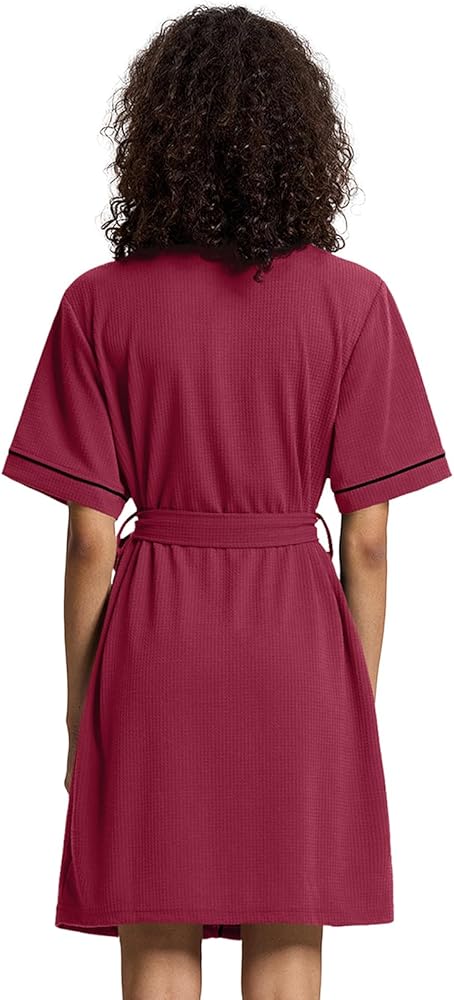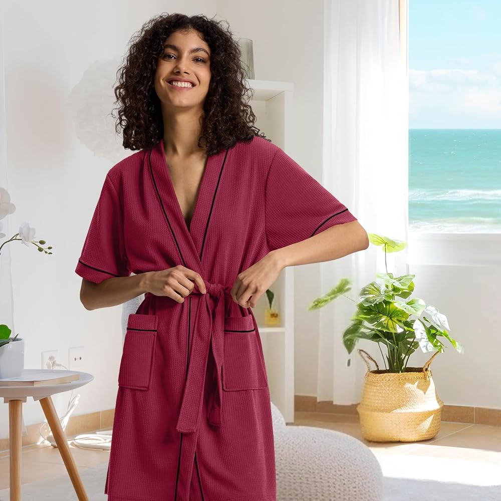 【Soft & Breathable Waffle Fabric】Made from lightweight, breathable waffle knit fabric, this short sleeve robe offers a soft, skin-friendly touch that keeps you cool and comfy—perfect for summer days, after showers, or casual lounging.
