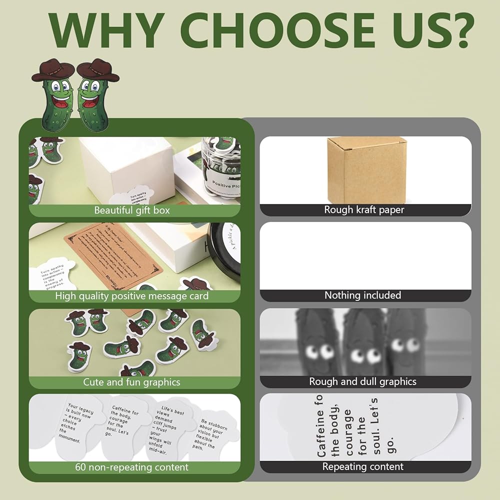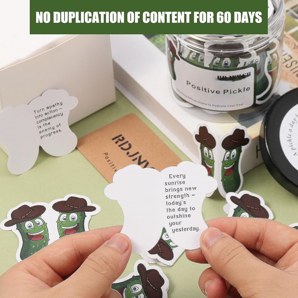 Great Gift Choice: Exclusive for pickle lovers, integrated into the pickle theme gift series, Each motivational card is designed to provide stress relief, lift your spirits with daily affirmation cards to spread joy and emotional comfort. It is a funny gift for women and teens.