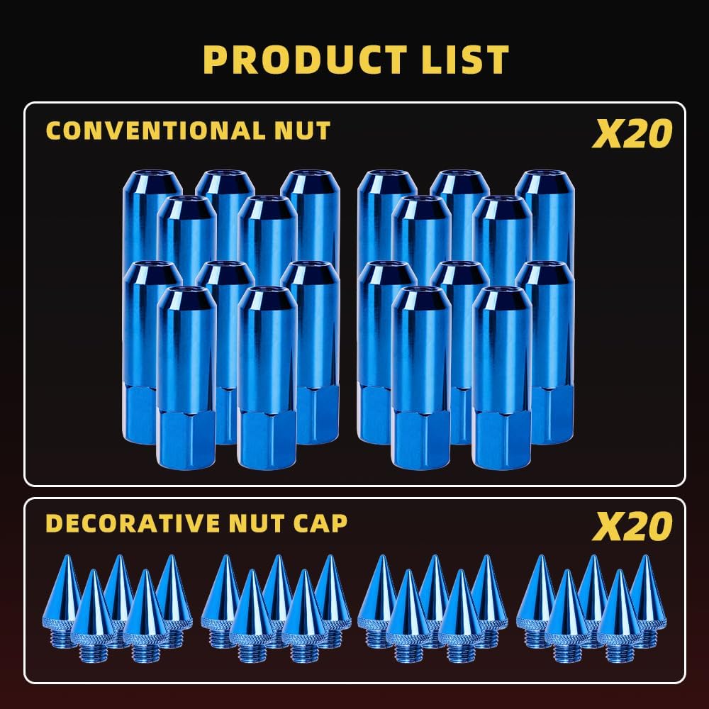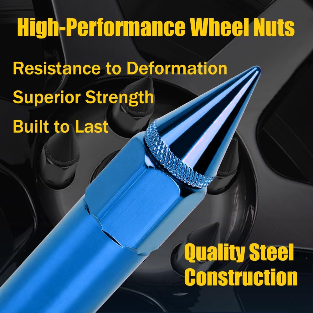 Electrophoretic Coating for Superior Protection:Our blue spike lug nuts feature a durable electrophoretic coating that provides exceptional resistance to corrosion, ensuring your wheels maintain a sleek appearance even in harsh weather conditions