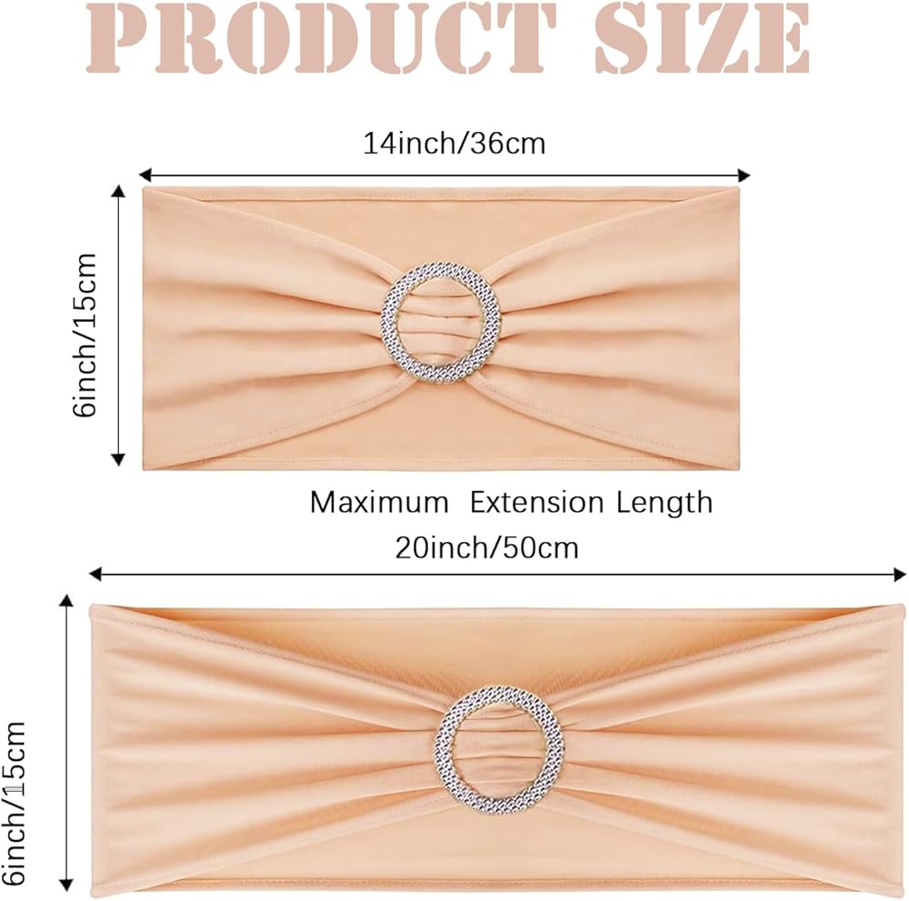 Long Lasting Stretchy Fabric: Spandex stretch chair sashes offer a stylish and elegant appearance for wedding and banquet chairs. The chair cover band is made of 90% polyester and 10% spandex , highly stretchable and fits 14-20 inches of chair back width.
