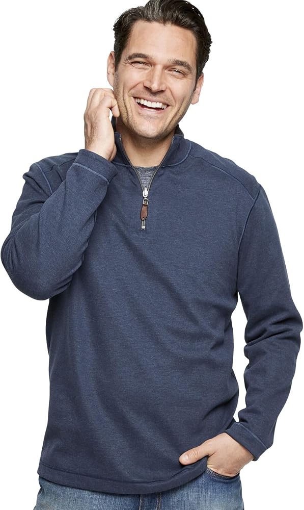Johnston & Murphy Men's Reversible Solid Quarter-Zip Blue/Light Gray M US
