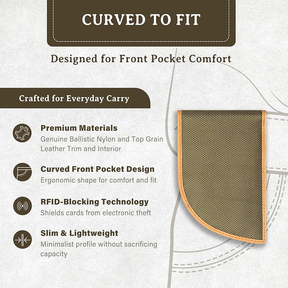 Rogue Industries Slim RFID Wallets for Men: Originally developed as anti-flak armor in World War II, ballistic nylon is known for its exceptional strength, and we've repurposed this rugged material in our Front Pocket Wallet. Designed for everyday durability, these durable wallets for men made from nylon blends toughness with a sleek, slim profile that slides easily into your front pocket. Accented with top-grain leather trim and interior, these rugged wallets for men bring a refined finish to their resilient build. This RFID-blocking lightweight wallet for men includes built-in WalletGuard lining to help shield your credit cards from unauthorized scans and digital theft. Thoughtfully designed for practicality, these ultra slim wallets for men feature three card slots, an ID window, a full-size billfold section, and a discreet stash pocket. Expertly crafted and globally sourced in India, this mens bi-fold wallet offers dependable protection, smart organization, and timeless style, making it the perfect front pocket wallet for travel, work, or daily use. – About Us: Founded in 2007, Rogue Industries began as a family project when Michael Lyons designed a front pocket wallet to ease his back pain. With two patented designs, we grew from a small idea into a brand offering leather goods like card cases and briefcases, now sold in over 500 stores across the USA.