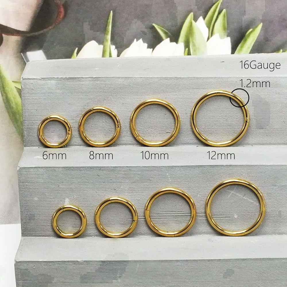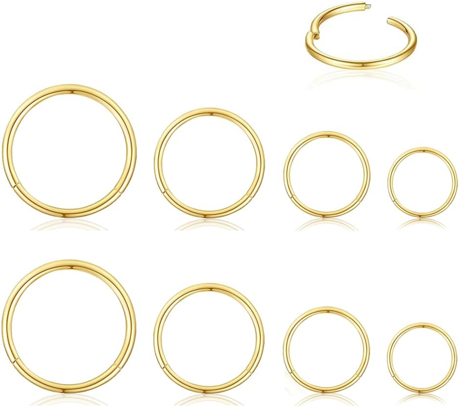 16G Surgical Stainless Steel earrings for women 6-8-10-12mm| Gold/Silver Septum rings Hinged Clicker Segment Nose Rings Helix Cartilage Daith Tragus Hypoallergenic sleeper hoop Earrings Body Piercing jewelry for Women Men earrings set 4pair/8PCS