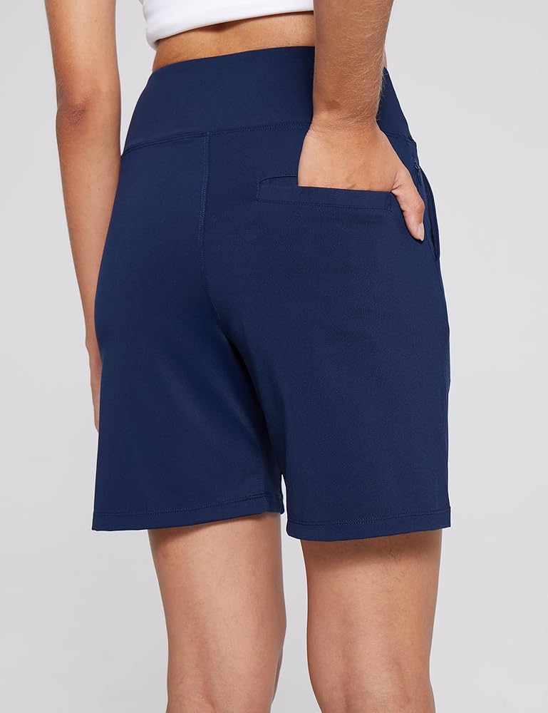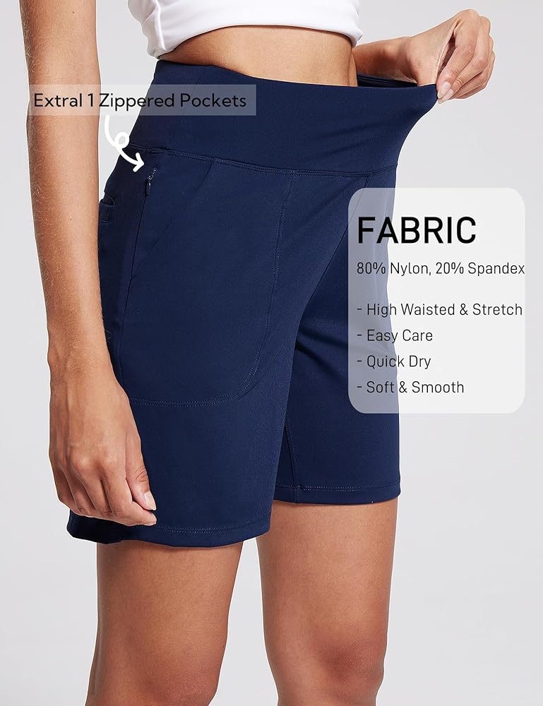 Women's 6.5" Athletic Long Shorts with Zippered Pockets High Waisted Bermuda Shorts for Walking Running Casual