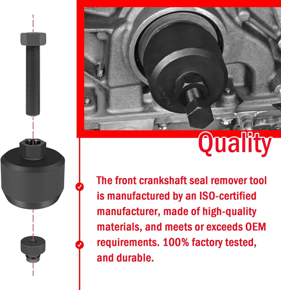 The rear crankshaft seal installer tool makes it easier to install rear crankshaft seals without damaging the seals and prevents them from leaking, ensuring that the crankshaft oil seal is installed at the correct depth.