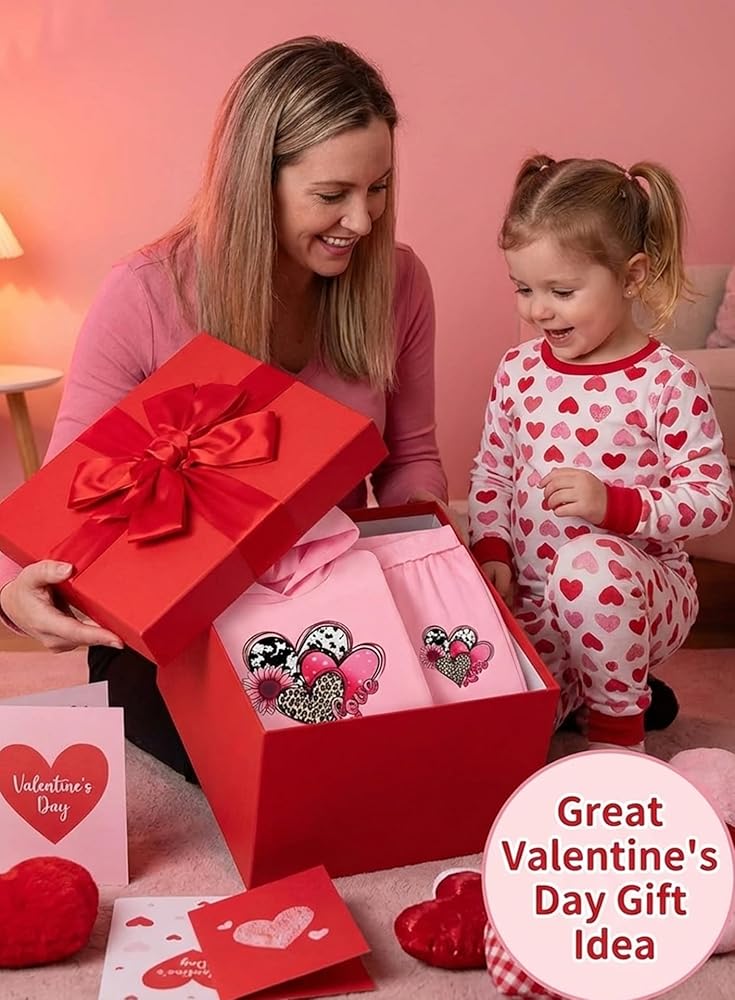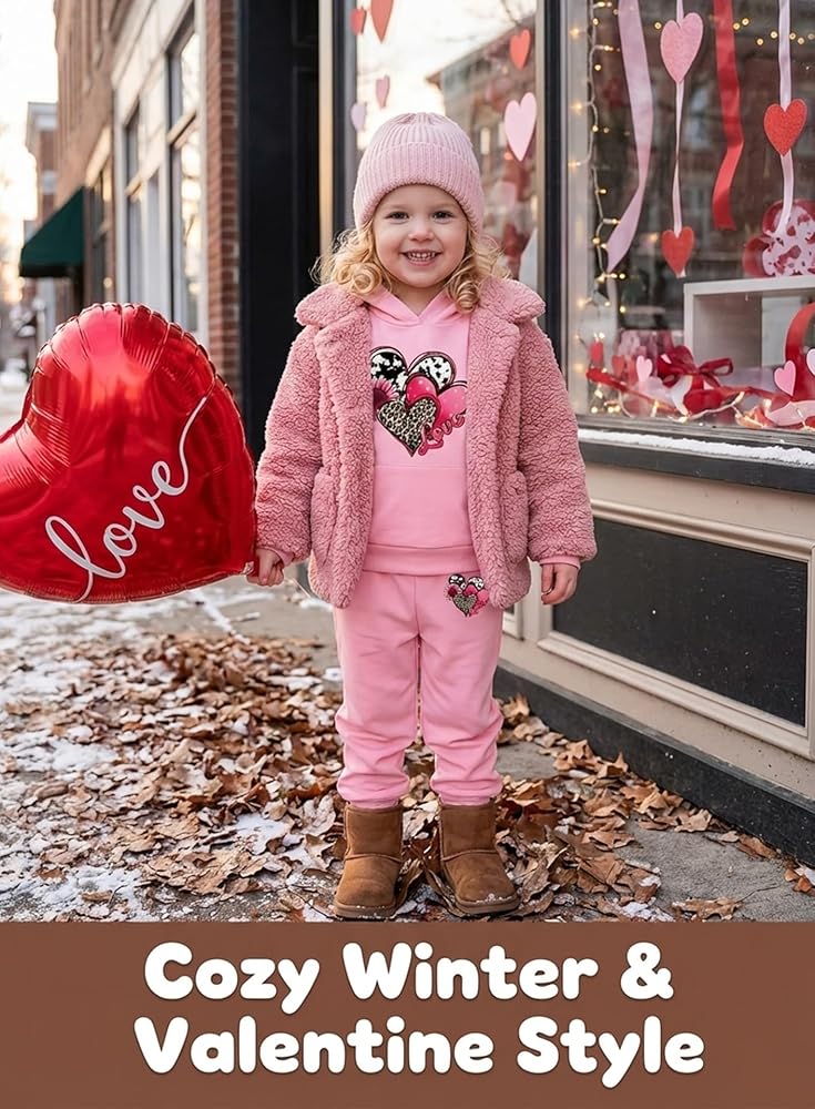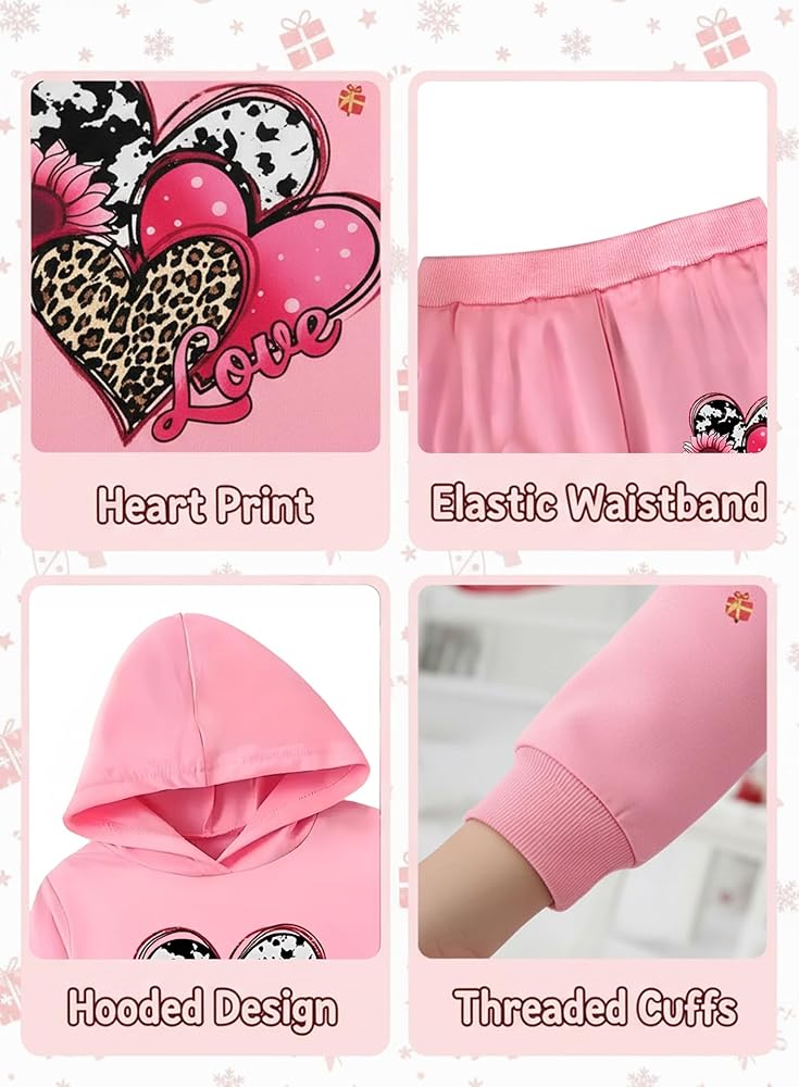 🎁 Perfect for Festive Occasions: This pink heart sweatsuit set for girls is ideal for school events, family gatherings, casual outings, or festive photo shoots. Whether it's Valentine's Day, birthday parties, or Christmas celebrations, this set adds a touch of charm to your little one's look.