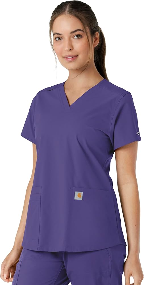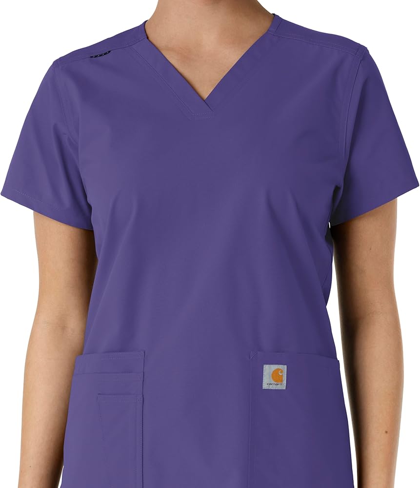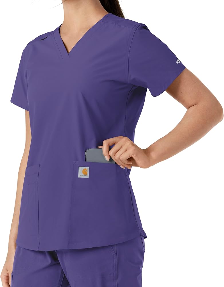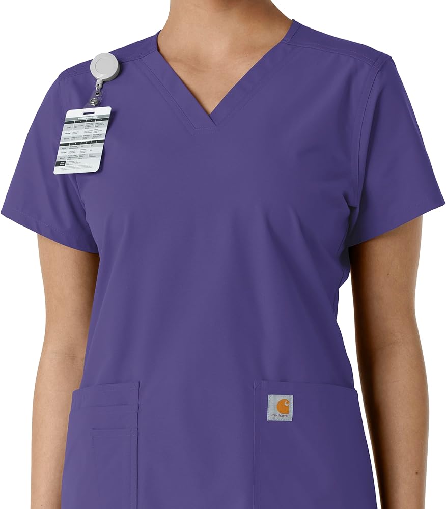 The Carhartt Force Essentials Women's V-Neck Scrub Top combines style, comfort, and functionality. Designed with a feminine 3/4" V-neckline, curved hem, and knit back yoke for flexibility, it's made to move with you. FastDry® technology wicks away sweat, while Stain Breaker® makes cleanup a breeze. Whether you're a nurse, doctor, or healthcare professional, this women's scrub top is a perfect blend of practicality and durability. Designed to work as hard as you do, it's the essential addition to your scrubs collection.