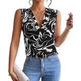 Features: Solid, NO elastic; V-neck, 3-layer overlap; elegant tops, business office clothes, casual vests