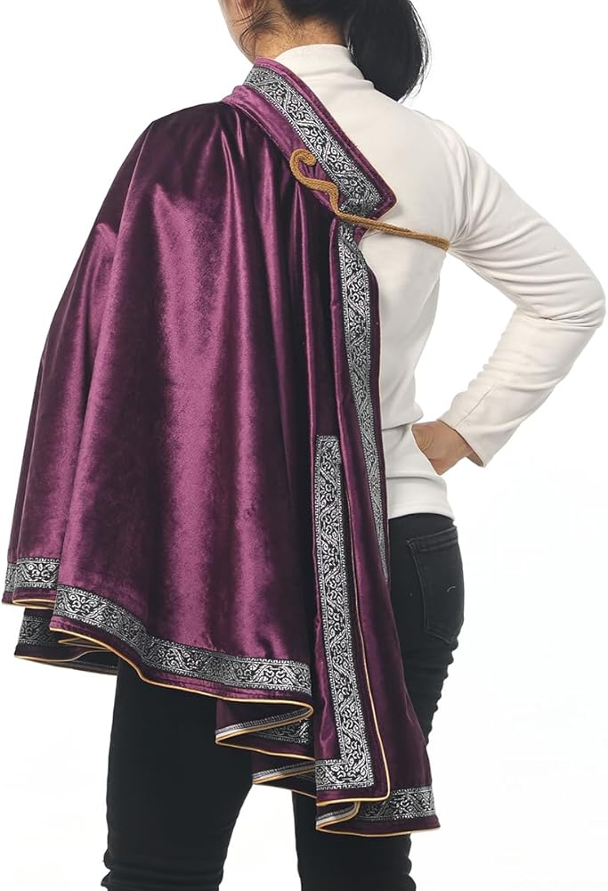 Size: Adjustable chest belt. One size fits most. Ideal for medieval-themed events or simply adding an element of medieval style to your wardrobe, this cape is sure to capture your attention and transport you to a world of mysterious darkness.
