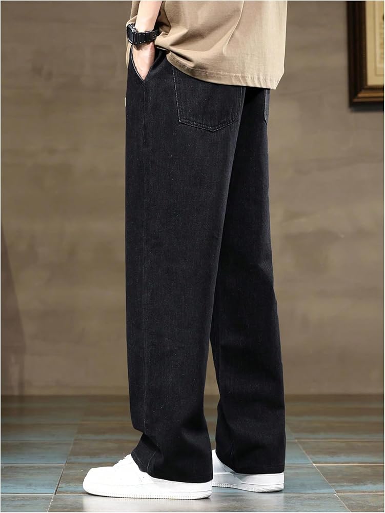 OYOANGLE Men's Vintage Elastic Drawstring Waist Jeans Casual Straight Leg Denim Pants