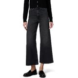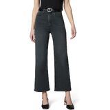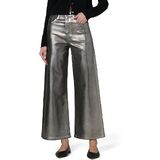 This elongating fit has a slim fit through the waist and hip with a high rise, full-length wide leg, trouser pockets, back darts with patch pockets and a wide hem