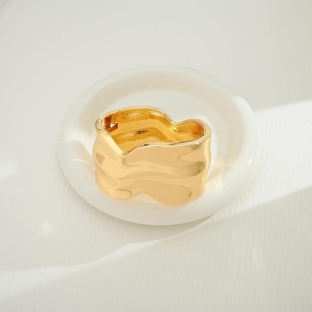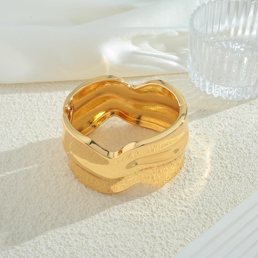 Luxurious Chunky Design: Crafted with premium zinc alloy gold-plated finish, this bold wide cuff features an irregular organic shape that makes a powerful fashion statement. The width and textured surface create eye-catching dimension perfect for women seeking trendy chunky jewelry that commands attention.
