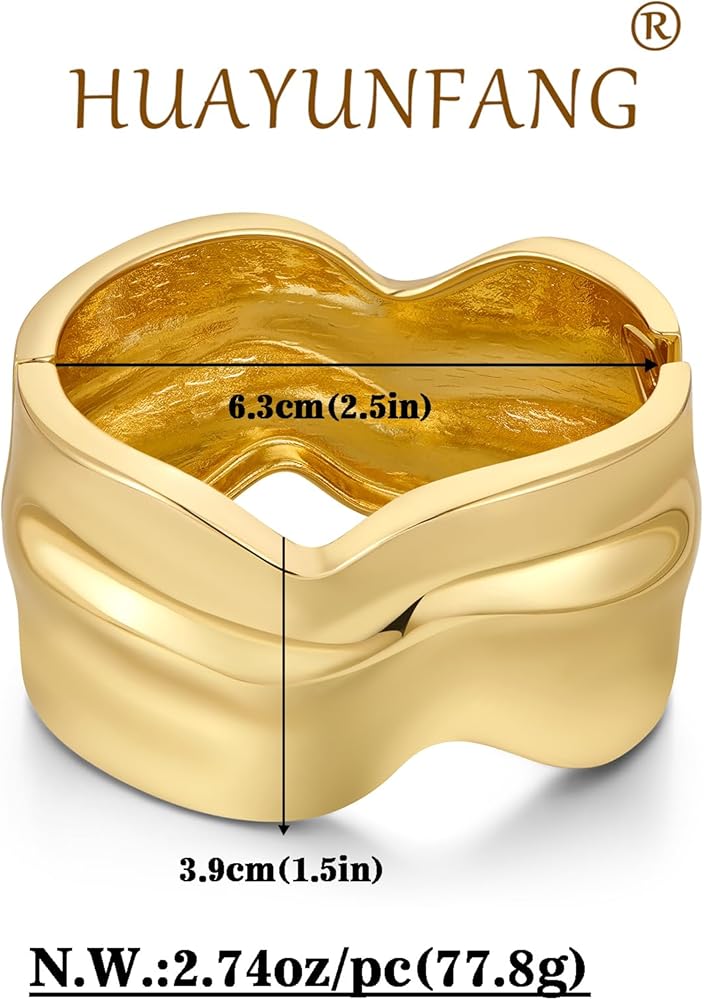 Secure Comfortable Fit: Designed for easy wear, our gold cuff bracelet features a smooth spring clasp closure that securely adapts to wrist sizes 3 inches. The lightweight yet durable construction ensures all-day comfort while maintaining its sculptural shape - ideal for those who love substantial accessories without heaviness.