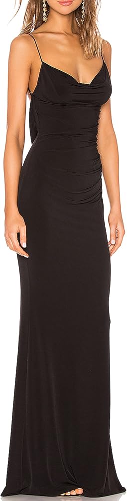 Styles: Womens elegant maxi dress, draped neckline and draped back with lace detail, slim fit hugs your body perfectly, let you more charming and sexier.