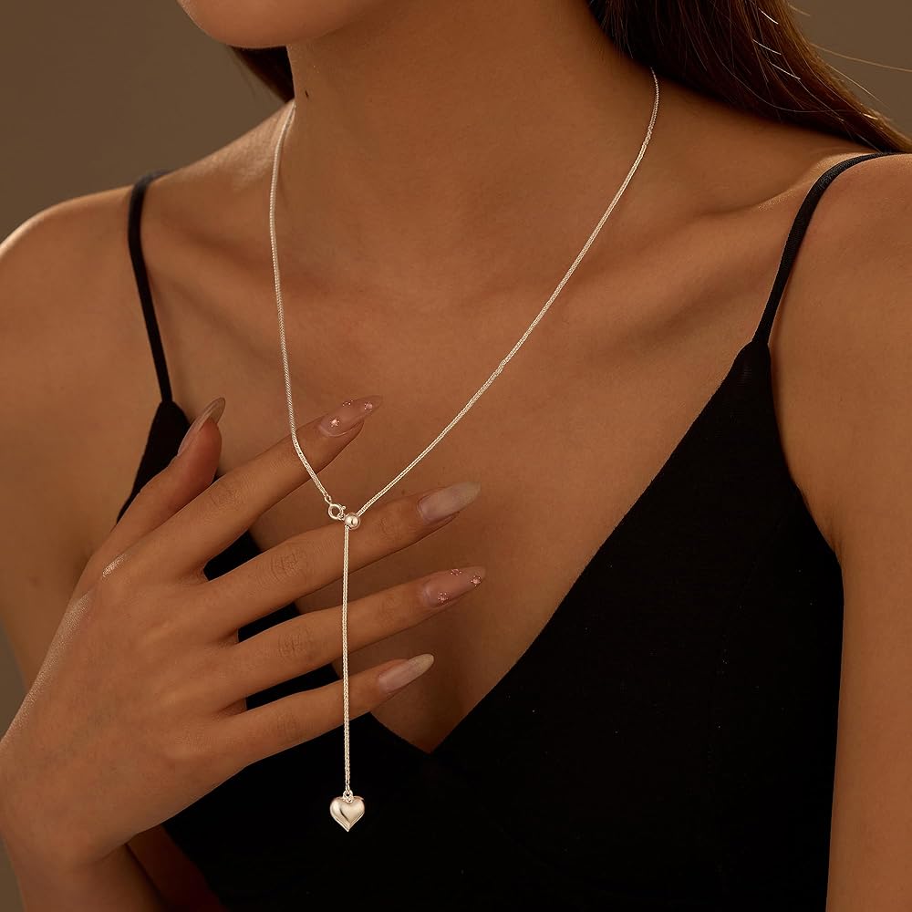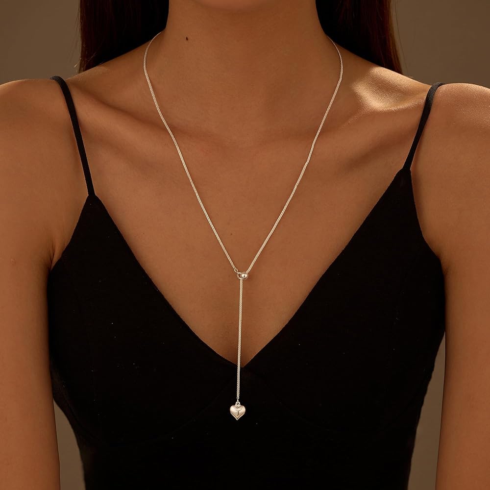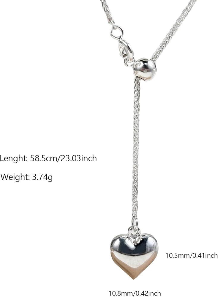 Adjustable Necklace: Heart long necklace length: 58.5 cm. The heart pendant: 1x1 cm, adjustable size fits most women. Our long chain necklace for women is designed with a lobster clasp for easy wear