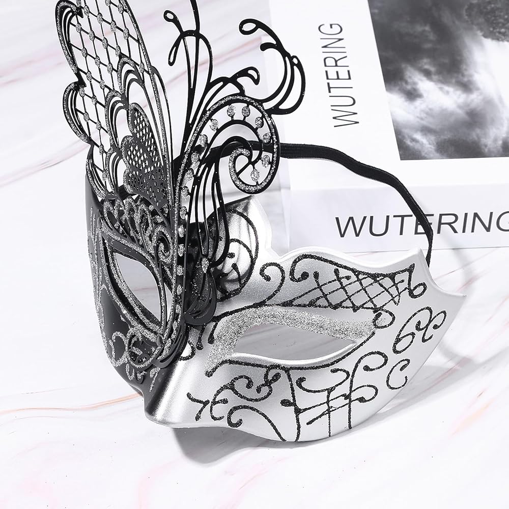 【MASQUERADE MASK COUPLES SET】 Women's rhinestone metal butterfly masquerade mask and men's Venetian masquerade mask set. Perfect for masquerade or Venetian party costume cosplay for most gentlemen or ladies.