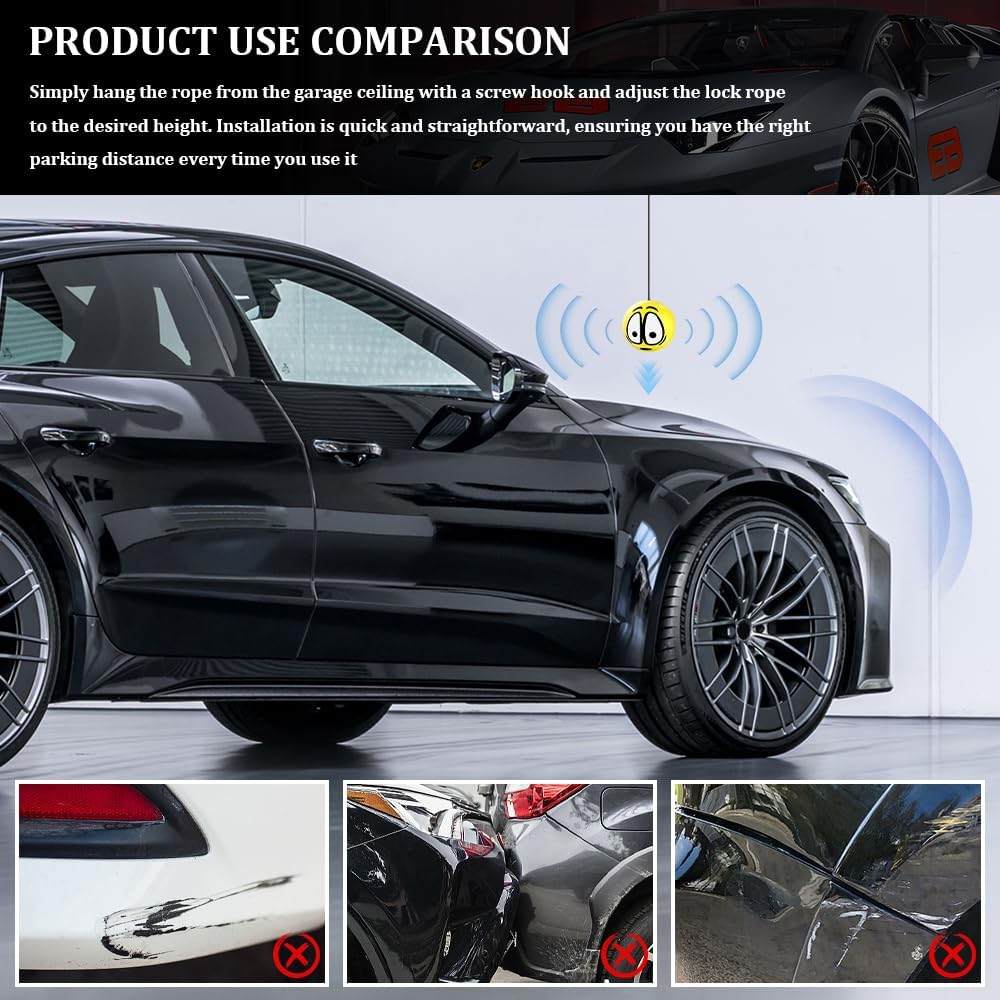 [Products include] : You will receive 2 or 4 complete sets of garage parking tool, each ball is equipped with a rope up to 4 meters long, you can flexibly adjust the length through the buckle, find the perfect height for your vehicle, bring you a fun parking experience