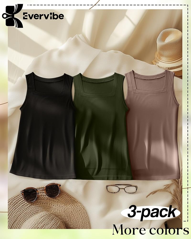 3 x Square neck tank top women