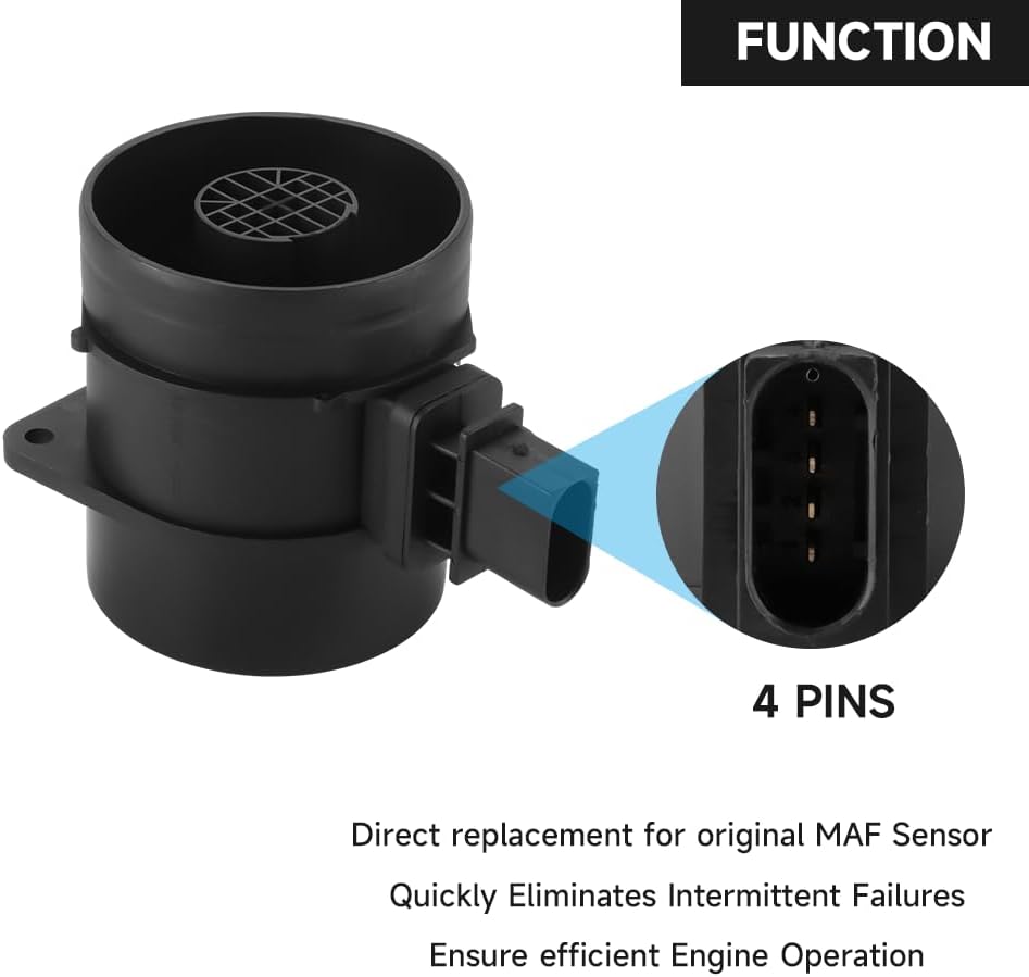 Function - Mass air flow sensors play a vital role in ensuring that the engine receives the proper amount of air and fuel mixture for efficient combustion and power output. This Mass Air Flow Sensor is designed to match the function and form of the original one, exactly OEM design to replace your old worn parts, high-quality materials,professionally manufactured, more wear resistant and durable. Replacing a new MAF Sensor can improve fuel efficiency and reduce emissions, to improve idling instability, poor acceleration, ensure your vehicle performs with optimum levels of safety.