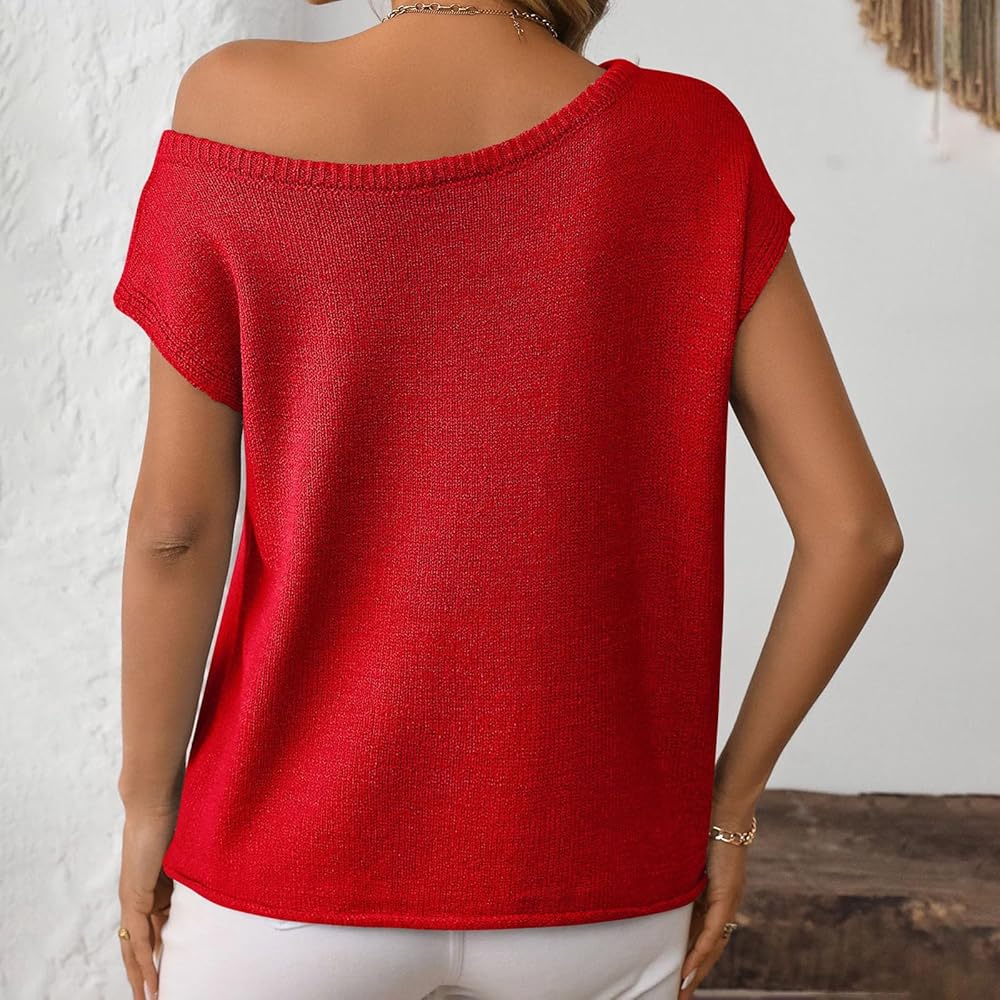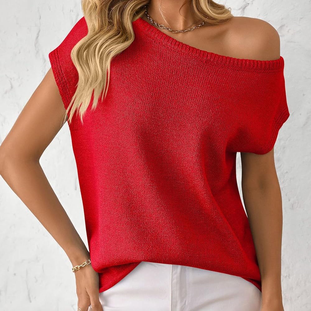 FEATURES: Womens casual tops, cap sleeve design, left shoulder is sleeveless, right shoulder is cover sleeve strapless, loose knit tank tops, show your beautiful arms and neck, elegant and retro, sleeveless tops for women, cute summer tops, sexy y2k knit tops, casual sweet sweaters for women