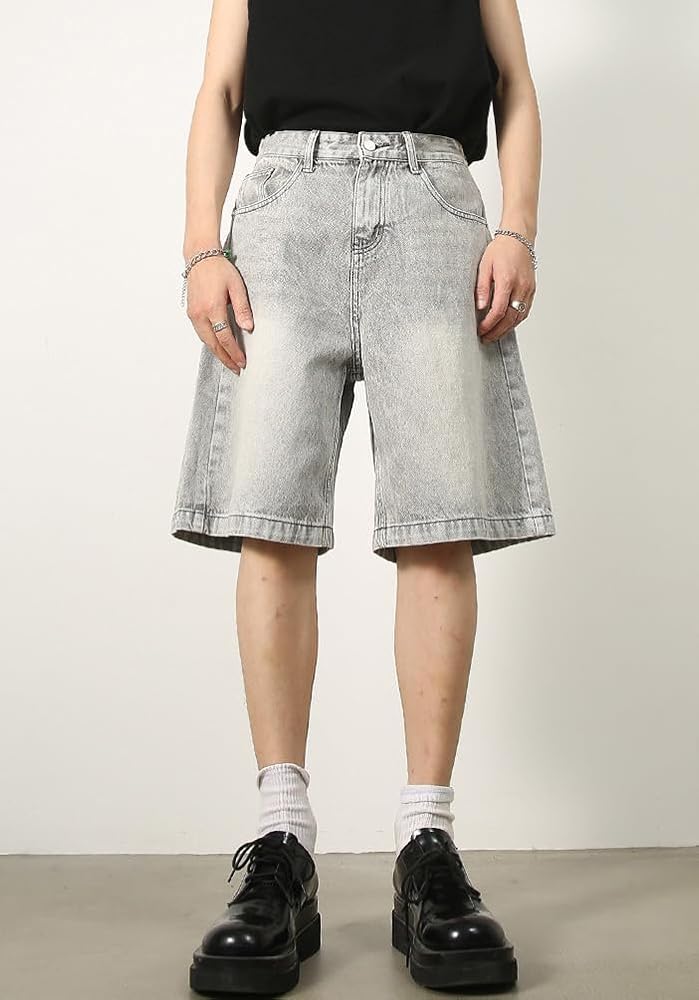 uhbkezy baggy jean shorts men 2025 summer vintage y2k jeans jorts loose fit straight wide leg baggy denim shorts with pockets