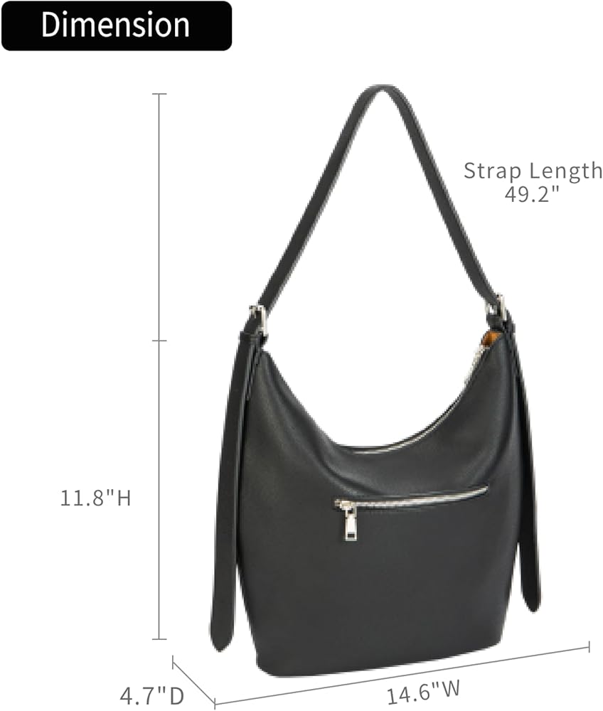 Spacious Design: With spacious dimensions of 14.6"W x 11.8"H x 4.7"D(37cm x 30cm x 12cm) and It features a zip pocket, and a slip pocket, this large hobo bag easily accommodates your essentials, including a ipad, A4 folder, notebook, water bottle, cosmetics, keys, and more—making it the ideal companion for work, dates, and daily errands.