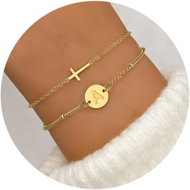 Unique letter and cross double layered design bracelet, The combination of the first letter of the surname and the cross, wearing it symbolizes love for one's beloved and hope for the future