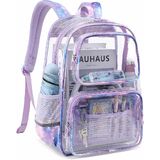 STURDY STRUCTURE: The outer frame of the backpack is made of sturdy plastic tube and reinforced stitching of the girls clear backpack could keep its straight shape and bear more weight