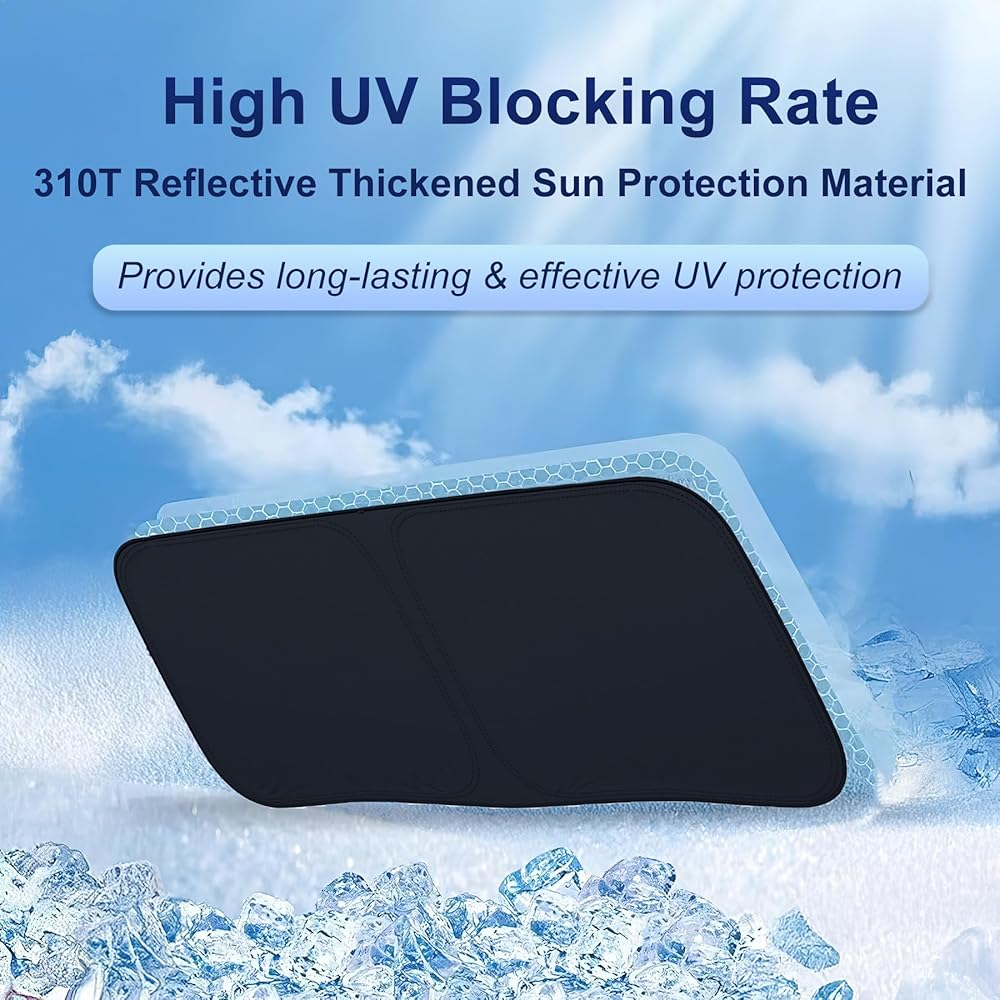 Upgrade Material: Premium 310T Reflective Fabric, multi-layer thickening design, effectively blocks 99% of sunlight and harmful UV rays, protecting your vehicle's interior from damage and preventing premature aging and fading.