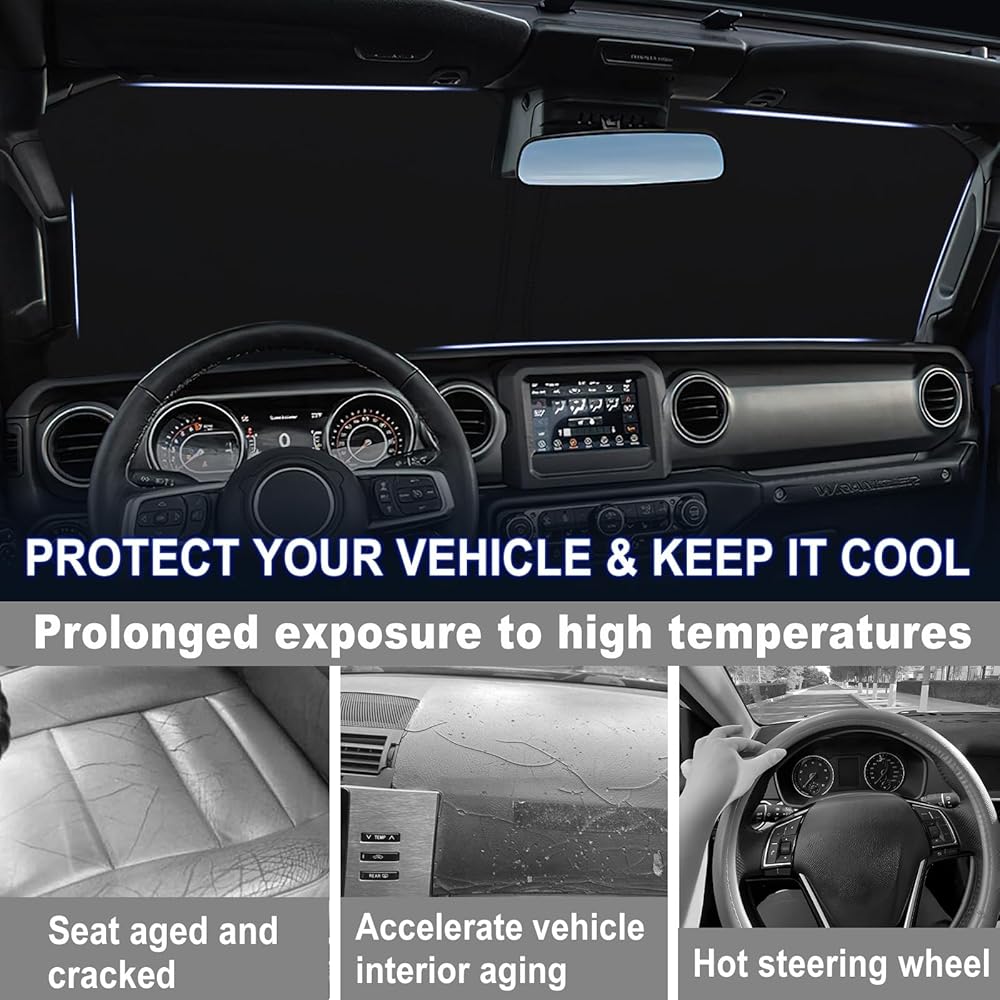 Enjoy Cool and Comfortable: Our sunshade features excellent two-color designs and reflective materials that distribute heat evenly, providing maximum coverage and effective UV protection that can mitigate the intense heat of the sun. Ensure a cool, enjoyable driving experience.