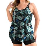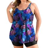 【Plus Size Bathing Suit for Women】 Scoop neck spaghetti strap vest, fashionable and bright floral print, perfectly showing your charm and beauty! The tankini top can also cover your excess belly fat and make you look thinner visually!