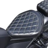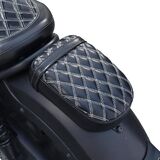 The touring saddle seat pad is made of soft premium synthetic leather, high-density sponge and high quality ABS plastic back plate, finish with color-matched stitching offers a unique stylish look.