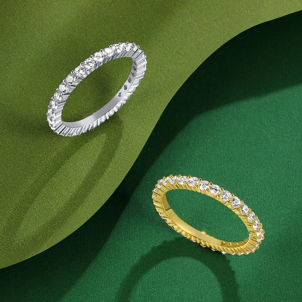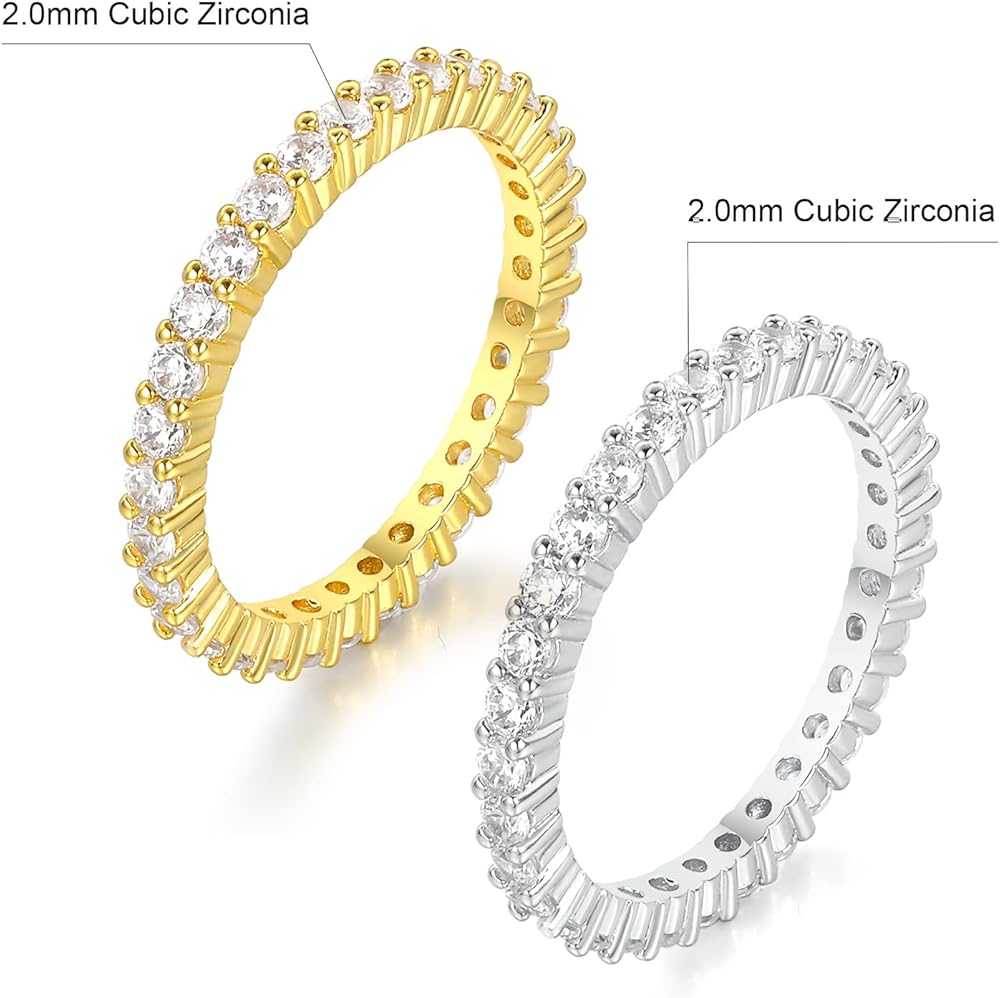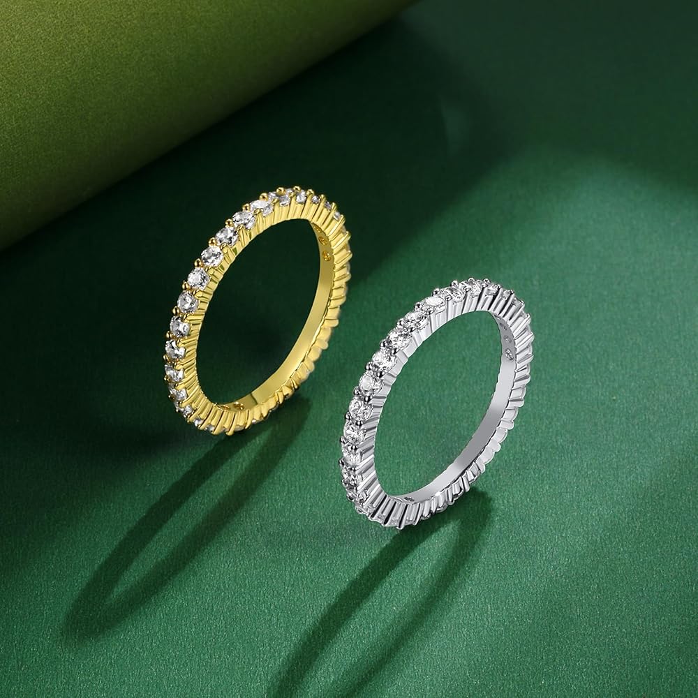 TIKJE 2 Rings Set For Women, 18k Yellow/White Gold Plated Rings - Cubic Zirconias Band Ring, Eternity Promise Engagement Wedding Band Gift For Her Size 5-12