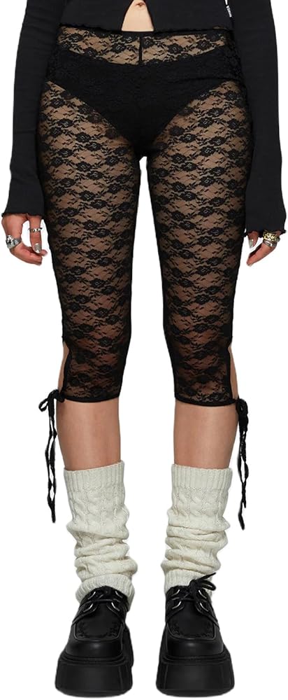 Package: 1*Sheer Lace Leggings capris for women teen girl egirl