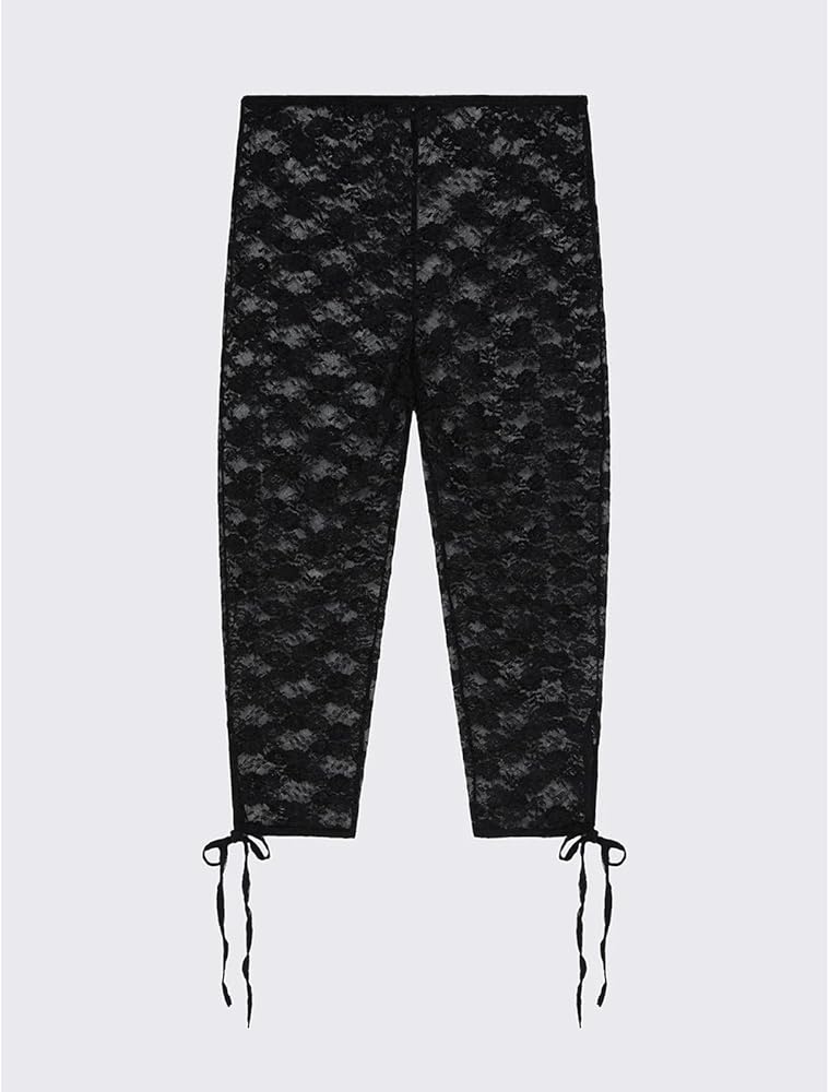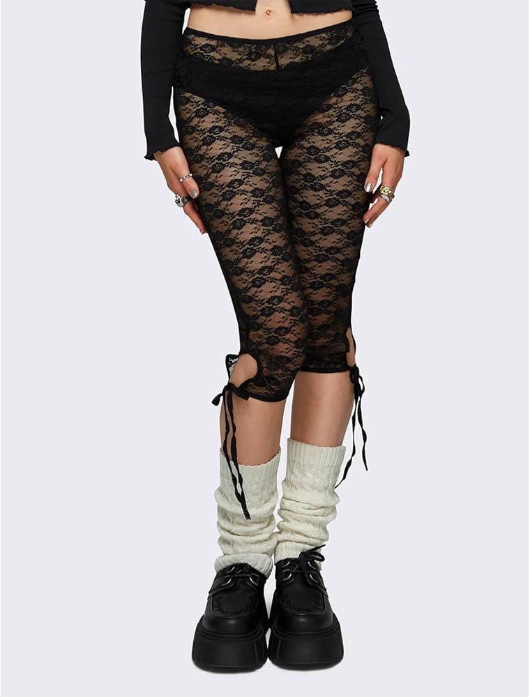 Design: Lace leggings capris ideal for women and teen girl; featuring vintage floral pattern; tied up hem details; see through; sheer lace leggings; knee length; high tights leggings; y2k aesthetic clothes