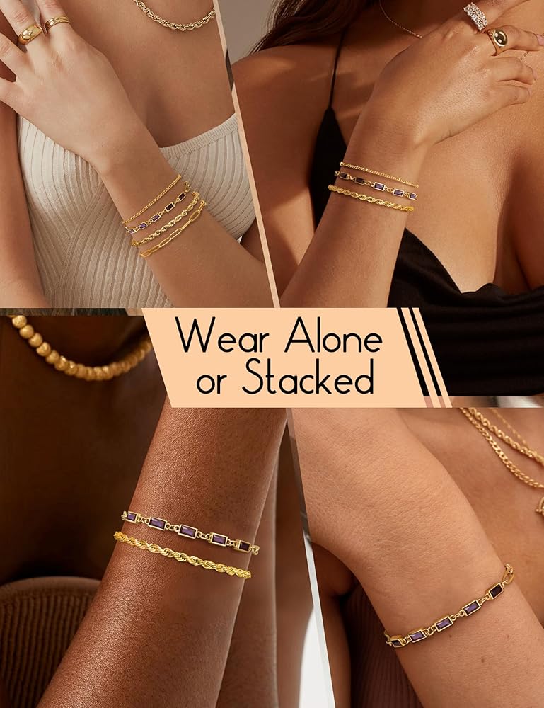 Stackable Bracelets for Women: The gold bracelet stack also includes a simple satellite bracelet, a paperclip bracelet and a rope bracelet. These stackable bracelets are the perfect additions to any outfit, each gold chain bracelet can be worn separately or combined with other layered gold bracelets set or other tarnish free gold jewelry accessory