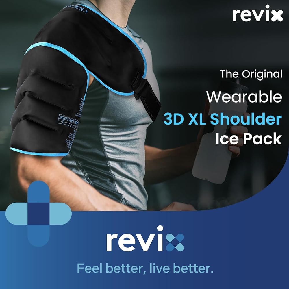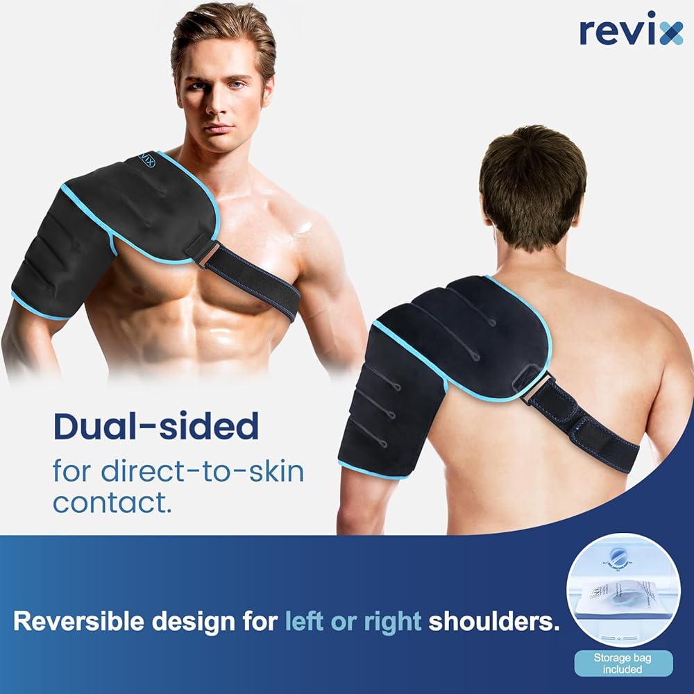 REVIX XL 3D Sewing Shoulder Ice Pack Wrap for Better Brace Coverage and Wear, Gel Ice Packs for Rotator Cuff, AC Joint Discomfort Hot Cold Gel Packs Reusable for Men & Women