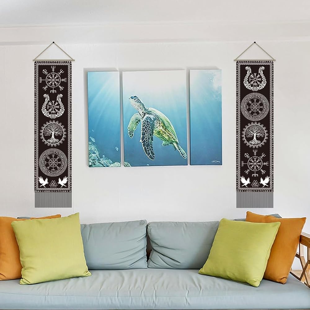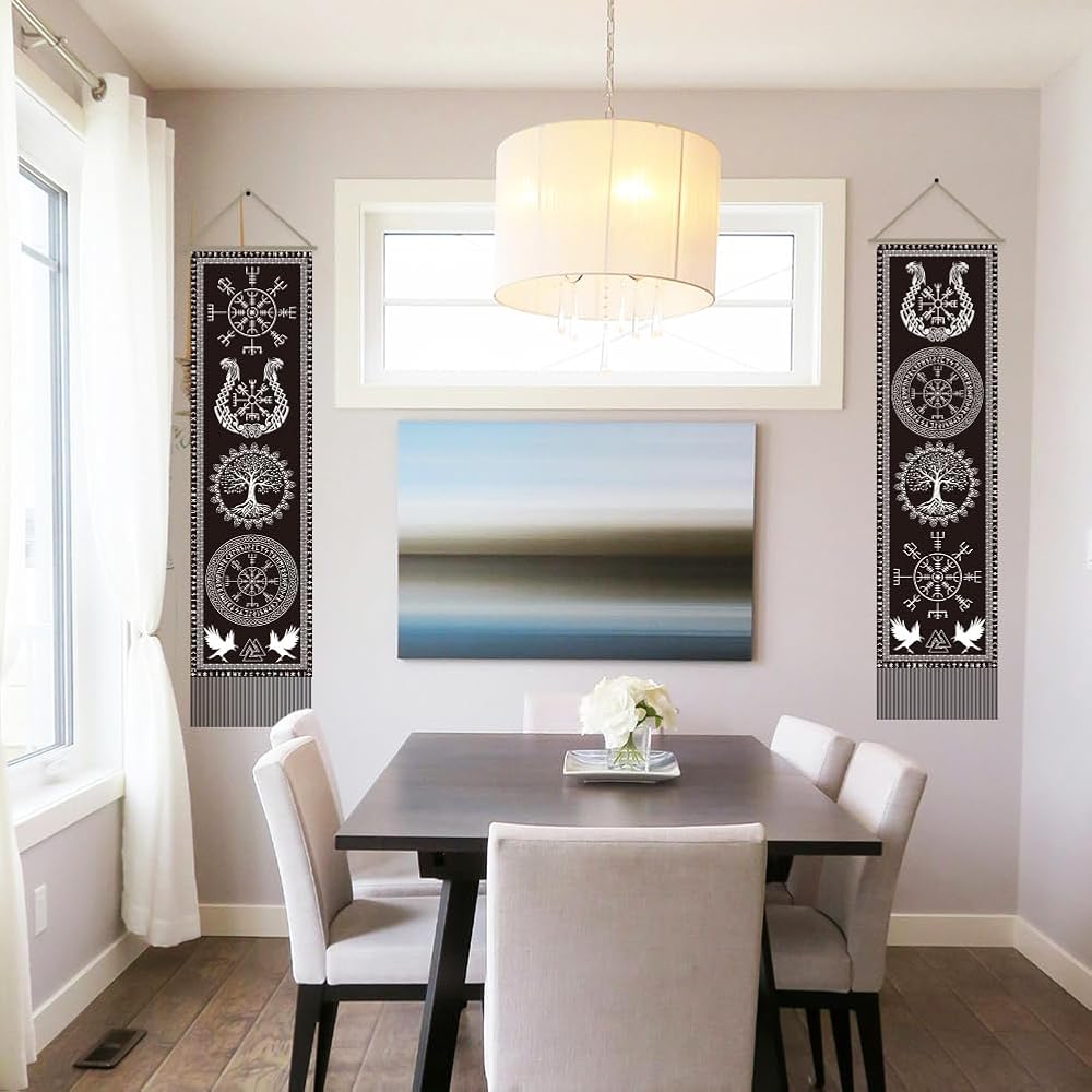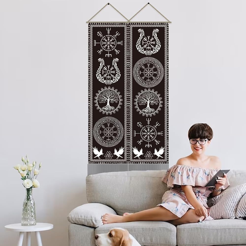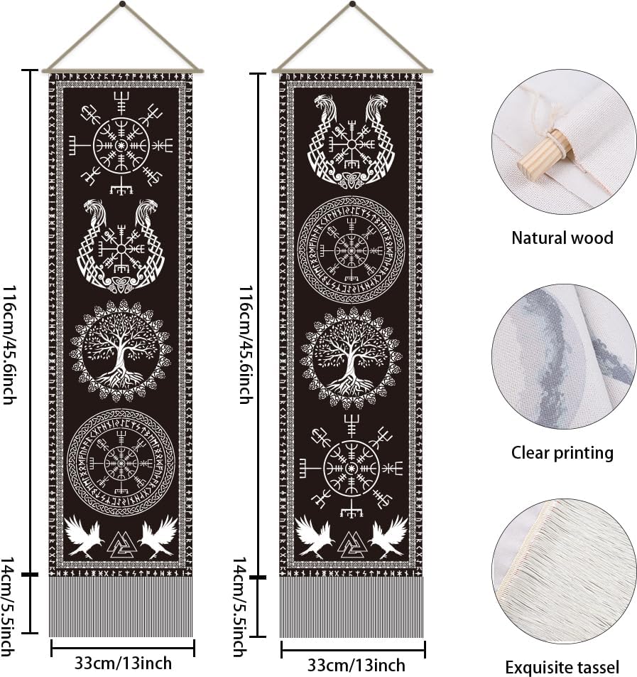 Package Include: You will receive 2 pieces of viking symbol tapestry wall hangings. Adorned with the intricate tree of life rune, a powerful symbol of growth, balance and the interconnectedness of all things, this long vertical tapestry can add a touch of mystical charm to your space