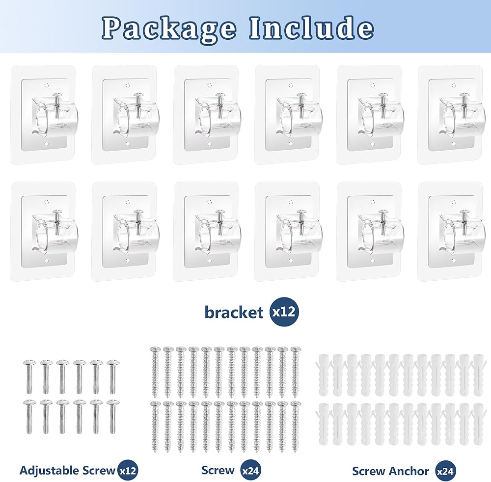 12PCS Self Adhesive Curtain Rod Holder No Drilling,No Drill Curtain Rod Bracket,Renter Friendly Draper Rod Hook,Nail Free Adjustable Non Screw Drapery Pole for Apartment Window Wall Door Ceiling Mount