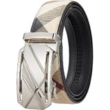 EASY TO USE - Just put the belt into the sliding buckle, adjust to an exact fit by holding the tail and the buckle simply auto locks the belt; to release the belt, gently push the lever on the side of automatic buckle.