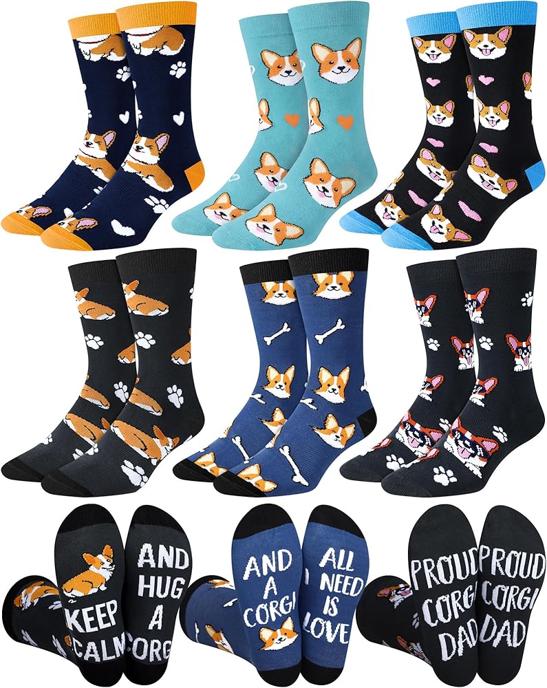 Unbox the Joy: what better way to show your appreciation to your friend or loved one than to share something you both love? The set of 6 pairs corgi crew socks is an ideal gift option, for birthdays, Christmas, Father's Day, or for the love of dogs socks