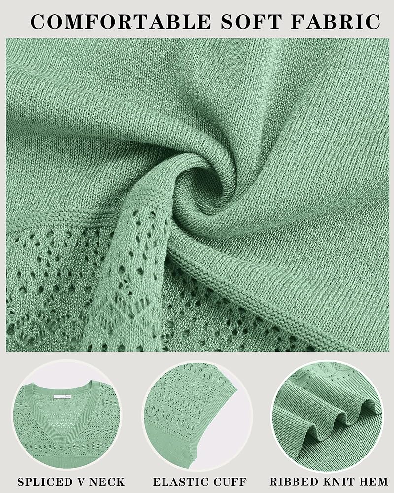 ✅【STYLISH DESIGNT】This lightweight sweater top features is chic patchwork and hollow out crochet design, adds a bit of cuteness and chic. The short cap sleeve design is beautiful,practical that wraps around the shoulders without too revealing. The hollow out sweaters with a nice elastic cuff that have moderate tension and will not cause any inconvenience to your arms in daily life.