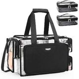 Relavel Clear Makeup Bag Extra Large Makeup Artist Kit Set, Cosmetic Storage Organizer Hair Stylist Traveling Bag, Transparent Tote Duffle Beach Toiletry Bag with Adjustable Dividers & Shoulder Strap