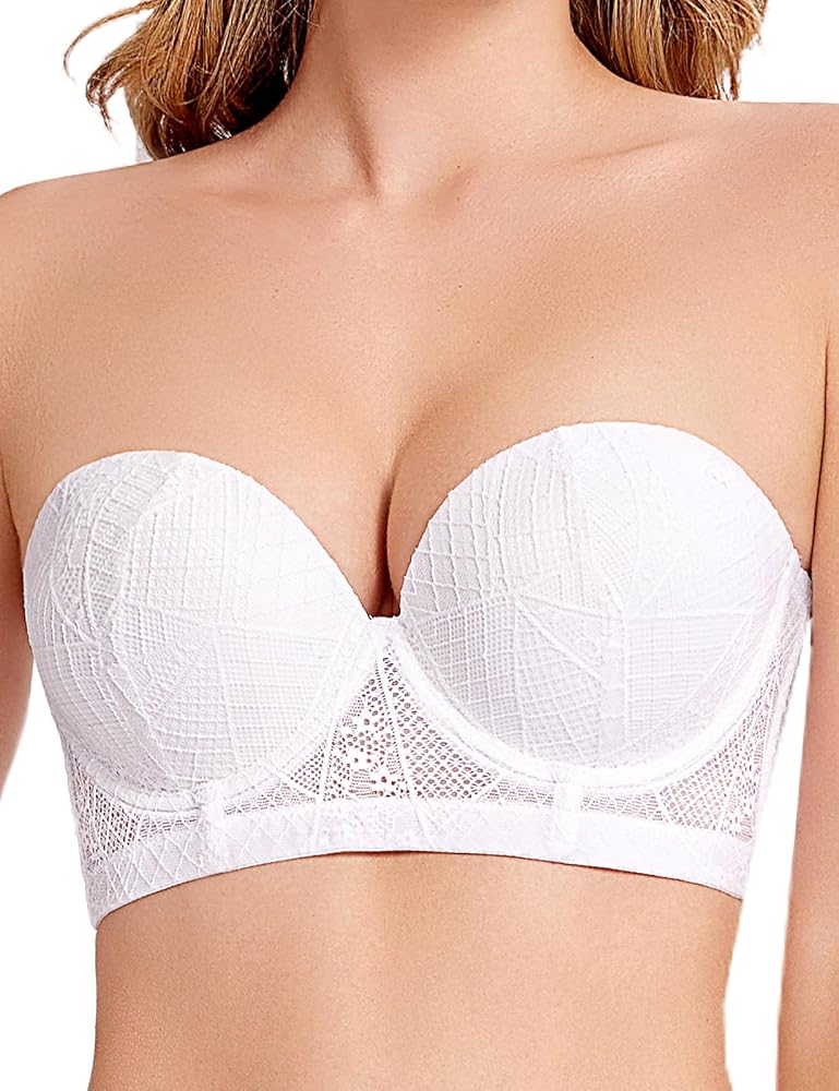 Longline strapless bra: the back is wide enough to stay in place when worn strapless, and the longline design helps smooth the dreaded back fat
